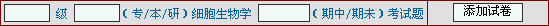 人工出卷首页面。对已存在的人工卷可分别点击“修改”或“删除”进行修改或删除整个试卷。添加新试卷可通过操作“ ”进行,若是正式的考试,图中各框都必须完整填写,再点击“添加试卷”按钮进行试卷添加,若非正式的考试,图中各框无须填写而直接点击“添加试卷”按钮进行试卷试卷添加。试卷添加或修改页面分上下两大部分,上面部分显示题库中试题情况,可进行分页查看、试题搜索等,每页显示三道试题的题目、答案、分值等;下面部分显示要添加或修改的试卷中的试题情况。点击上面部分的试题后的“选取”可将相应试题选入下面部分显示要添加或修改的试卷中,点击下面部分的试题后的“删除”可将相应试题从要添加或修改的试卷中删除。添加或修改完成后点击 返回人工出卷首页面