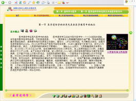设置好文字部分的显示后,按“确定”按钮进入课堂学习页面(见右图4)。进入此页面后首先将鼠标移到页面右侧的坚“课程导航菜单”,菜单移出,点击其中相应章节名称可进入相应章节的首页面点击“下一页”或“上一页”即可按顺序对本章知识进行从头到尾